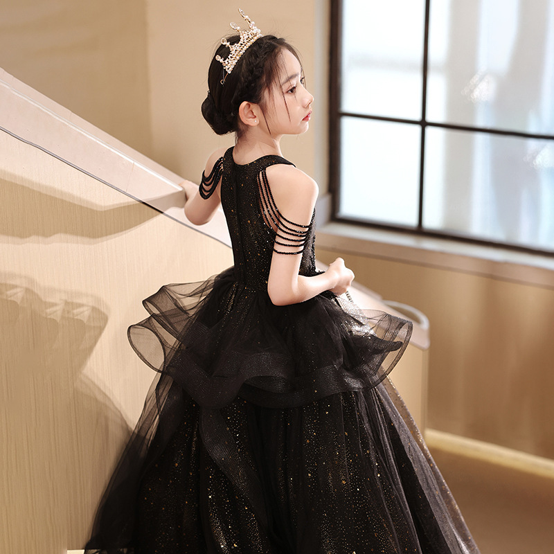Gaun Malam Anak Perempuan Mewah Ringan Rok Putri Hitam Kelas Atas Niche Pakaian Pertunjukan Piano Tuan Rumah Pertunjukan Anak