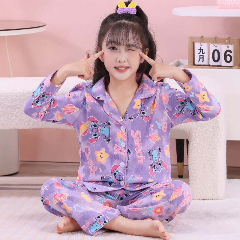 睡衣儿童家居服韩版开衫女童睡衣云朵棉春秋季宝宝长袖长裤套装批