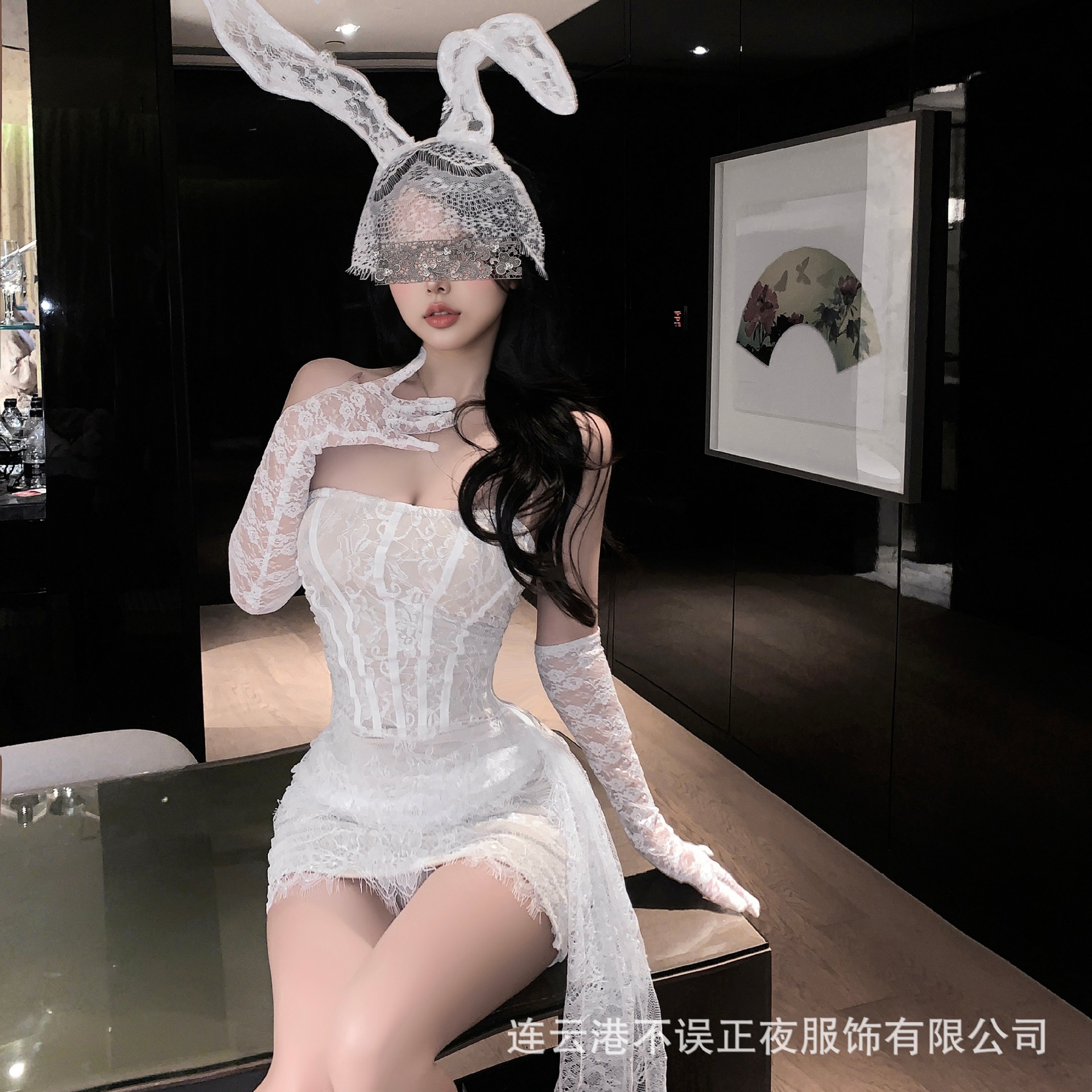 不误正夜情趣内衣性感蕾丝绑带抹胸连衣裙纯欲诱惑鱼骨制服套装女