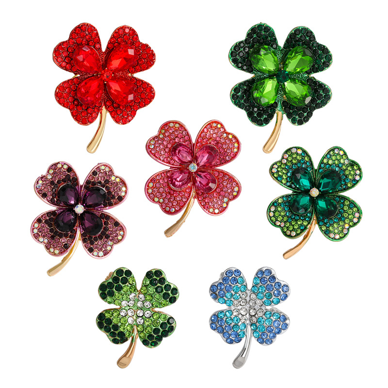 新款绿色锆石四叶草胸针女高级感西装外套高端胸花衣服领针丝巾扣