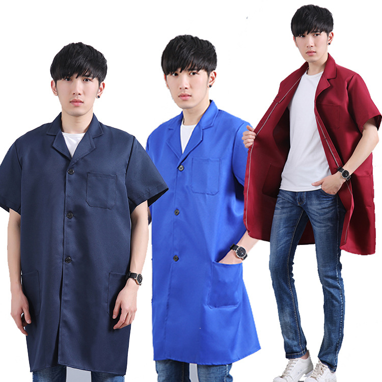 Musim panas setengah lengan biru gaun lengan pendek pakaian kerja tipis tahan aus mekanik perbaikan pakaian beberapa area dua potong gratis pengiriman