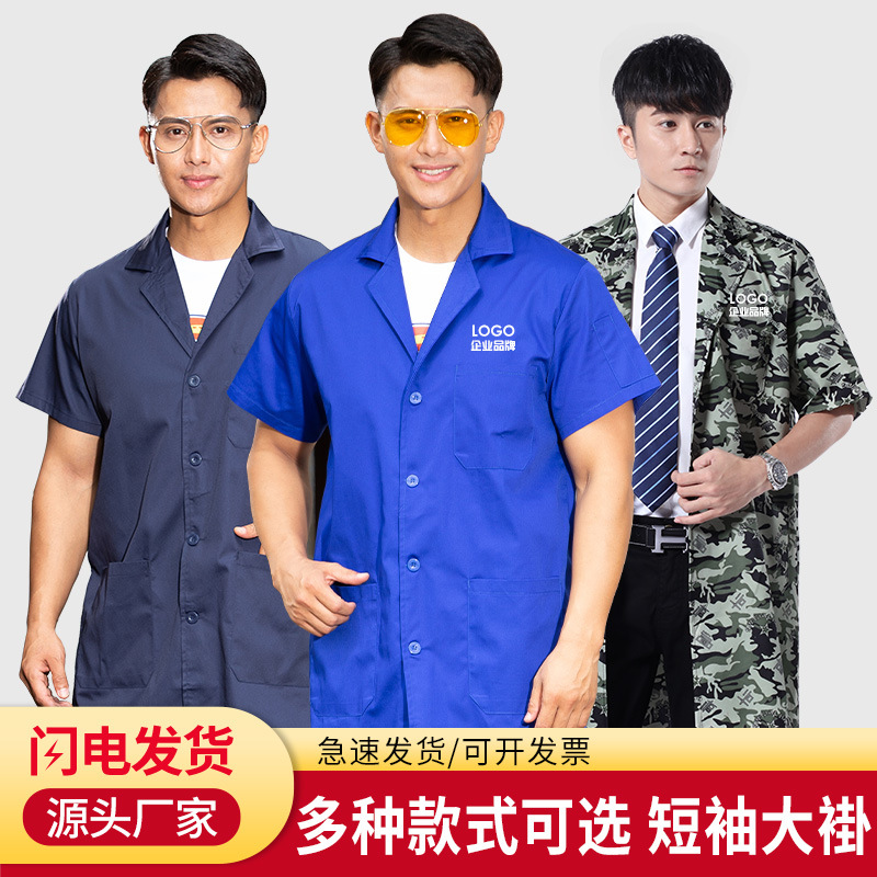 Baju kerja biru gaun disesuaikan dicetak LOGO lengan pendek pakaian pelindung tenaga kerja coverall gaun kamuflase pakaian tahan debu grosir baju bergerak