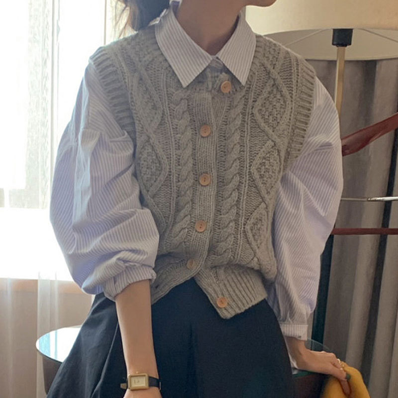 Kardigan Rompi Rajut Bunga Twist Retro Pengurangan Usia Gaya Korea Rompi Rompi Tali Bahu Dipakai Luar Bertumpuk Elegan Musim Gugur