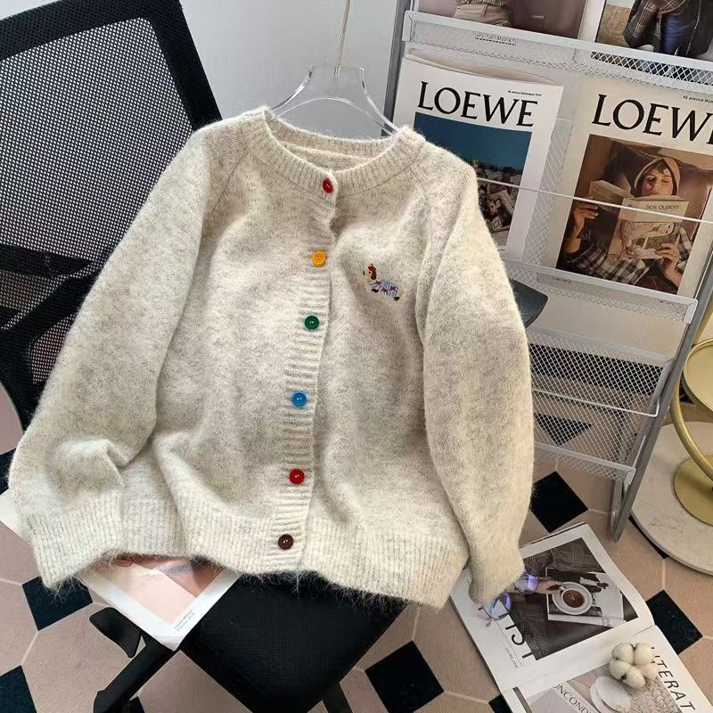 Pakaian Wanita Kardigan Rajutan Anak Anjing Kerah Bulat Versi Korea Musim Gugur Musim Dingin Gaya Chanel Model Baru 2025 Sweater Netral Trendi