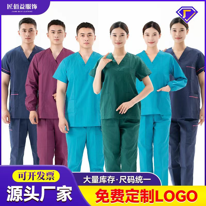 Baju cuci tangan lengan pendek, pakaian kerja salon kecantikan pria dan wanita ruang operasi baju cuci tangan dokter oral pakaian cuci tangan dalam stok