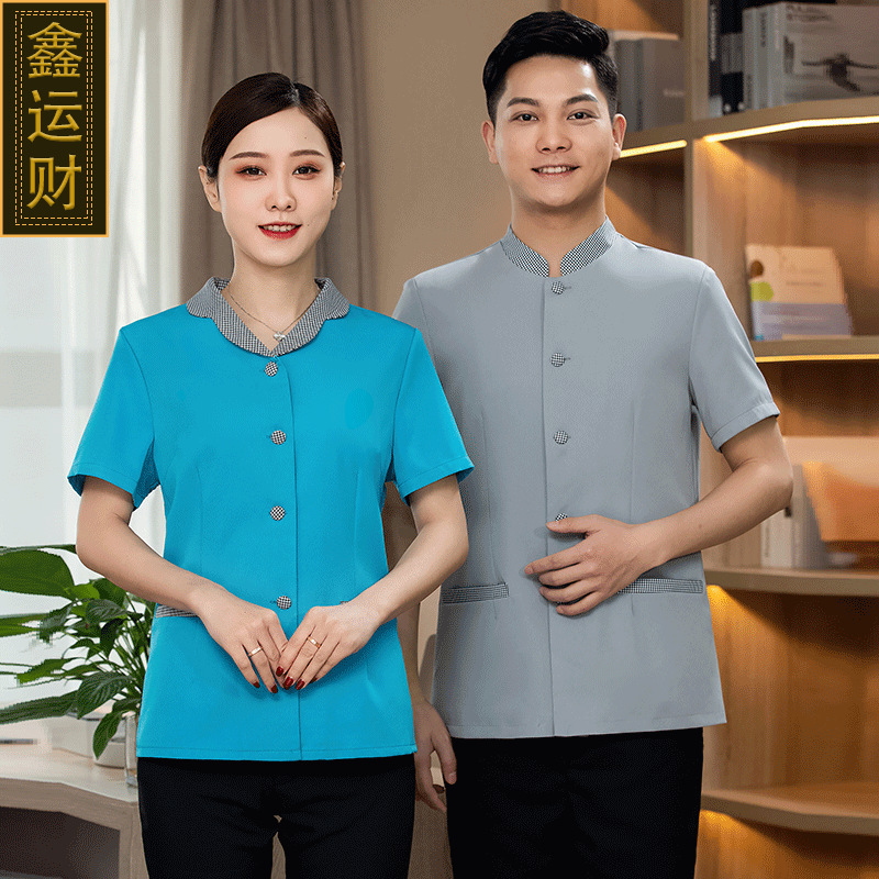 Pakaian kerja pembersih lengan pendek, pakaian musim panas untuk hotel ruang tamu, pembersih rumah tangga, setelan bibi, properti komunitas, musim panas, wanita