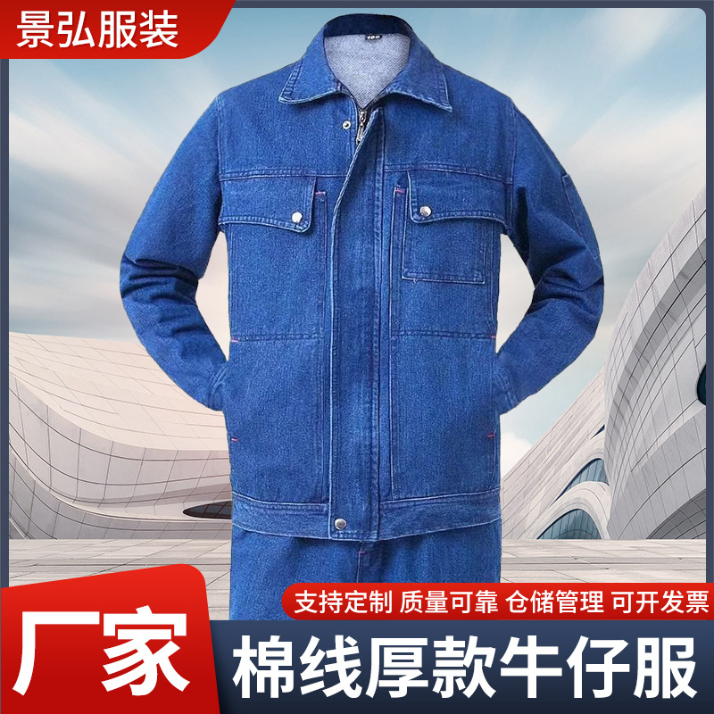 Setelan pakaian kerja Denim pria, pakaian las tahan aus dipertebal, pabrik katun anti melepuh, pelindung kerja