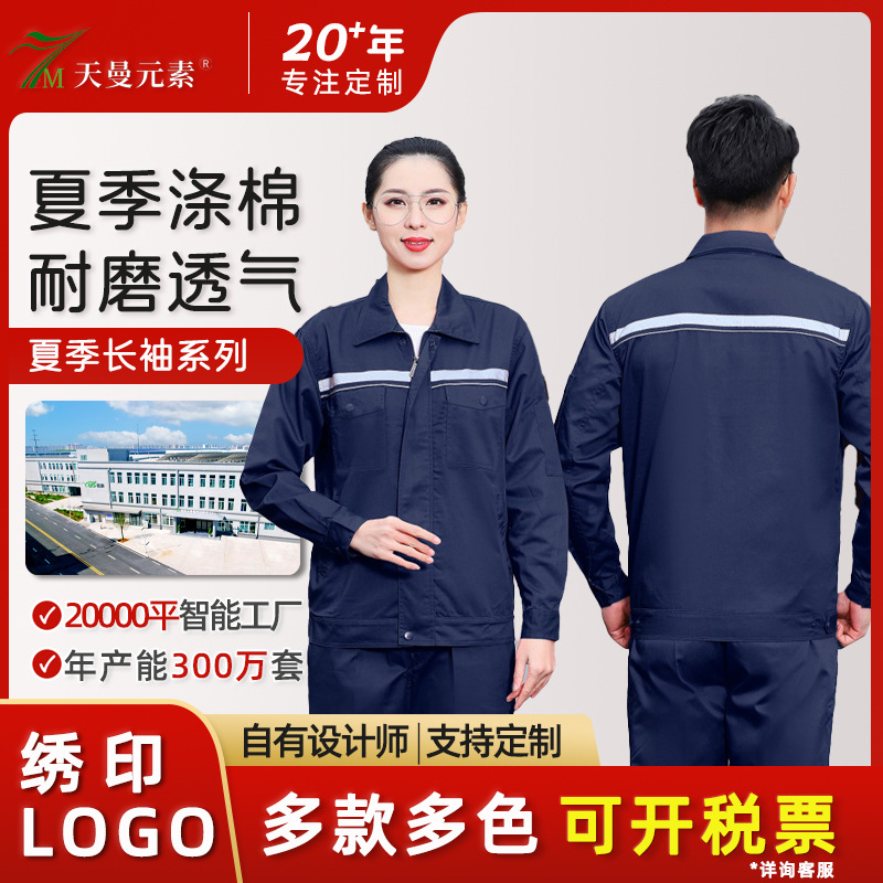 Pakaian kerja tipis lengan panjang musim panas katun poliester pakaian kerja pria dan wanita sejuk tahan aus pakaian pelindung tenaga kerja pabrik pakaian kerja grosir