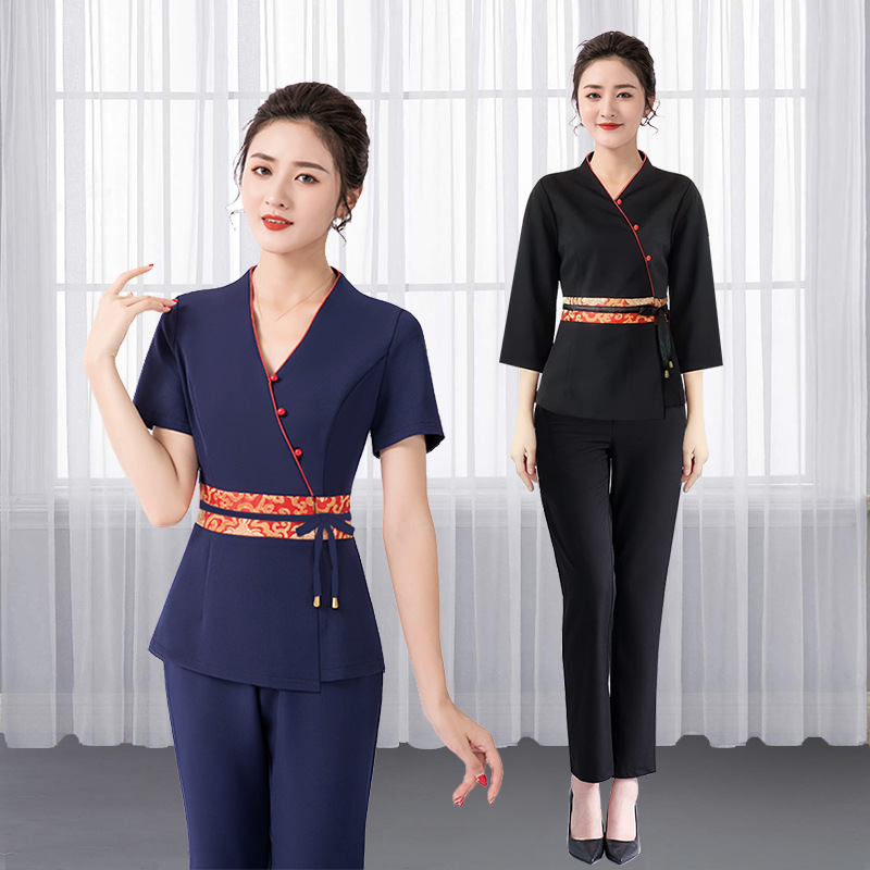 Baju kerja salon kecantikan wanita Pusat Kesehatan Pijat kaki toko teknisi ahli kecantikan setengah Lengan setelan temperamen pakaian SPA mandi kaki