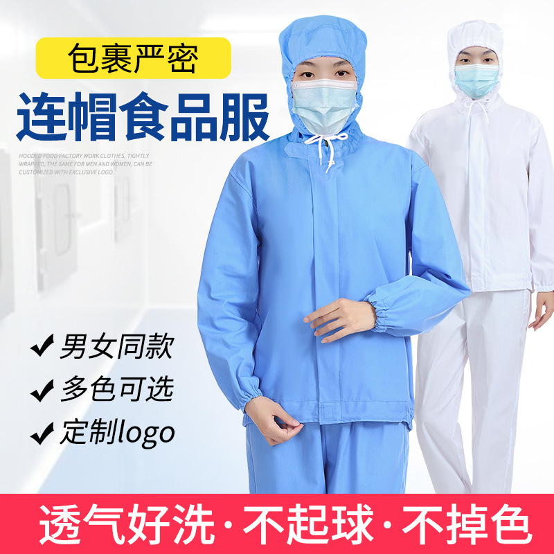 Lengan panjang empat musim tipis makanan pabrik setelan bertudung produksi makanan dan pengolahan lokakarya bernapas pakaian kerja pria dan wanita