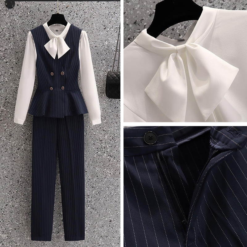 Setelan Pakaian Kerja Rompi Bergaris Kelas Atas Pakaian Profesional Wanita Departemen Penjualan Kecantikan Toko Perhiasan Meja Depan Hotel