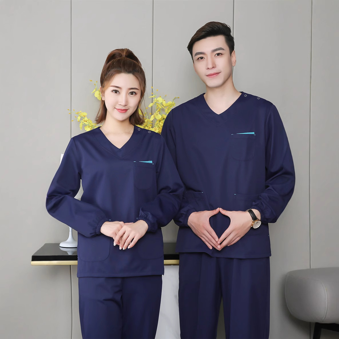 Pakaian Cuci Tangan Model Tipis Luar Negeri Amazon Luar Negeri Pakaian Bedah Dokter Pria Pakaian Kerja Kerah V Elastis Perawat Wanita