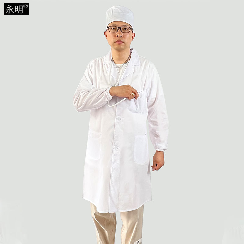 Katun poliester poplin duoliang musim panas dewasa dokter lengan panjang gaun putih pakaian kerja medis pakaian kerja laboratorium