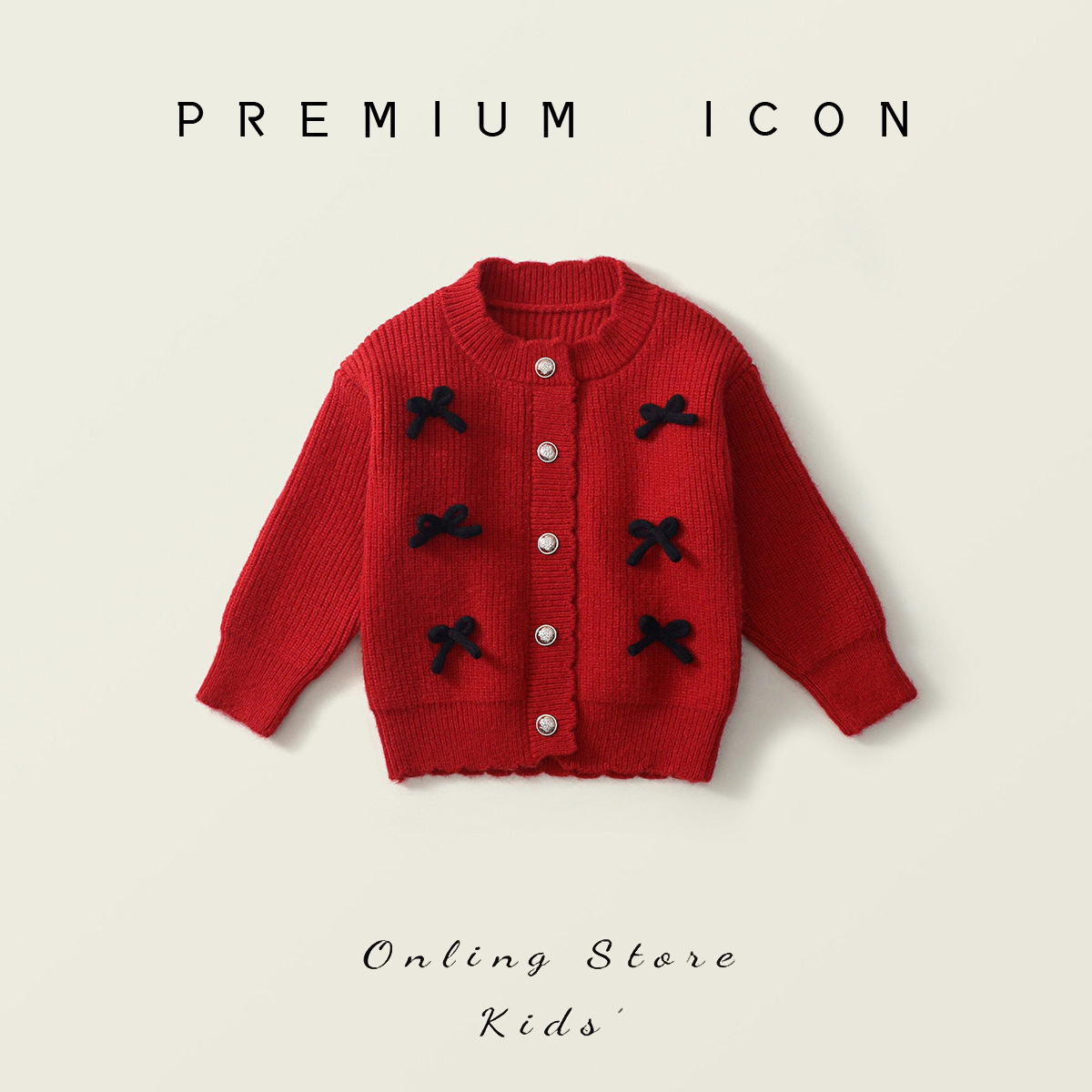 Kardigan Rajut Merah Anak Perempuan 2025 Musim Gugur/Musim Dingin Gaya Korea Baru dengan Pita, Sweater Lengan Panjang untuk Anak Muda dan Usia Pertengahan, Tersedia untuk Grosir.
