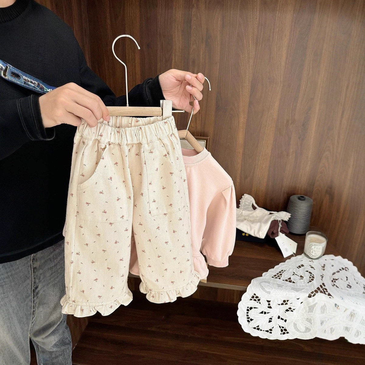 Celana kasual bunga kecil manis bayi perempuan celana lurus katun pakaian kerja longgar baru musim gugur 2025 bayi perempuan.