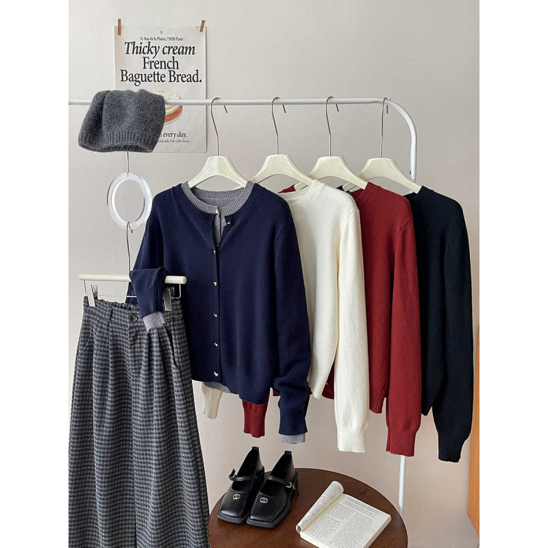 日韩系复古爱心小金扣毛针织开衫女秋冬洋气外套休闲内搭叠穿上衣