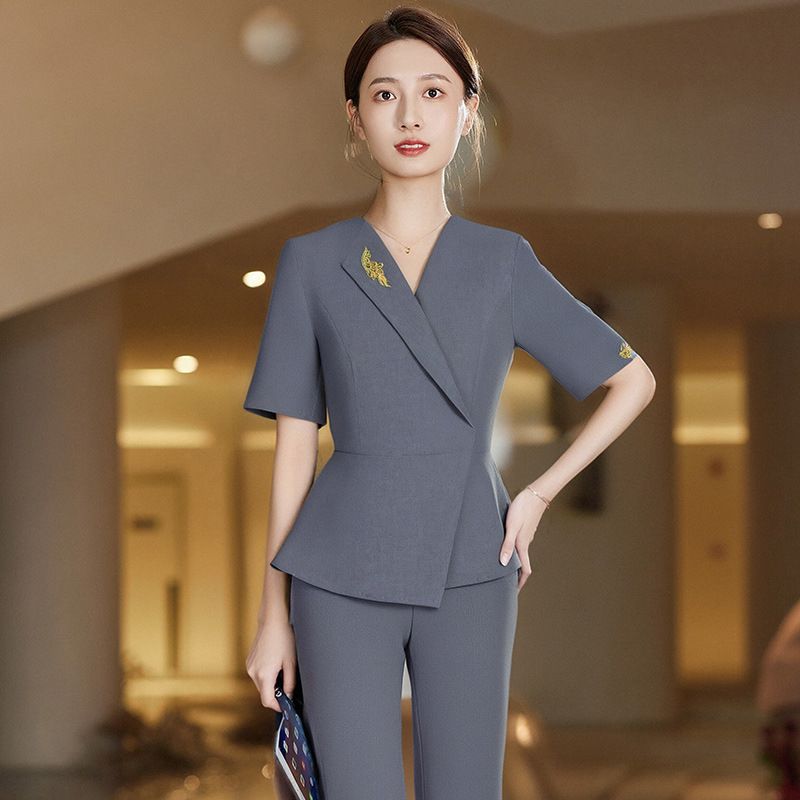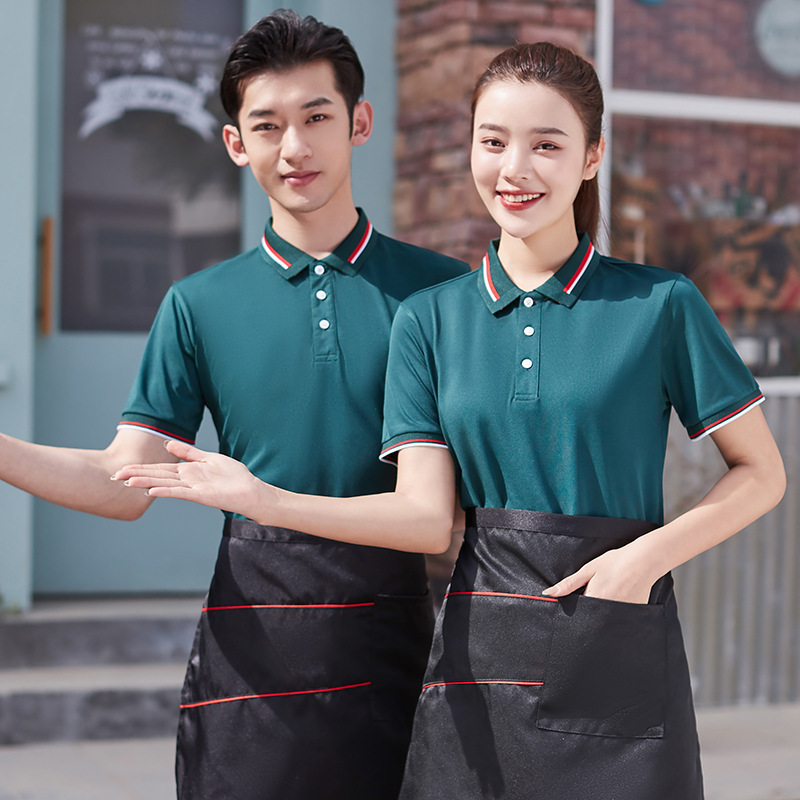 Pakaian Kerja Pelayan Katering Hotel Kustom Lengan Pendek T-Shirt Pakaian Kerja Kelompok Teh Susu Restoran Restoran Musim Panas