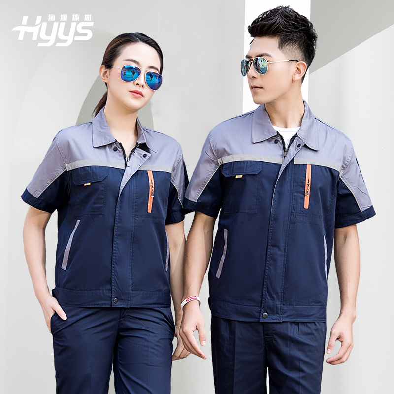 Pakaian kerja musim panas pria, disesuaikan tipis bernapas lengan pendek pakaian pabrik perbaikan mesin perlindungan tenaga kerja pekerja pakaian konstruksi situs kerja