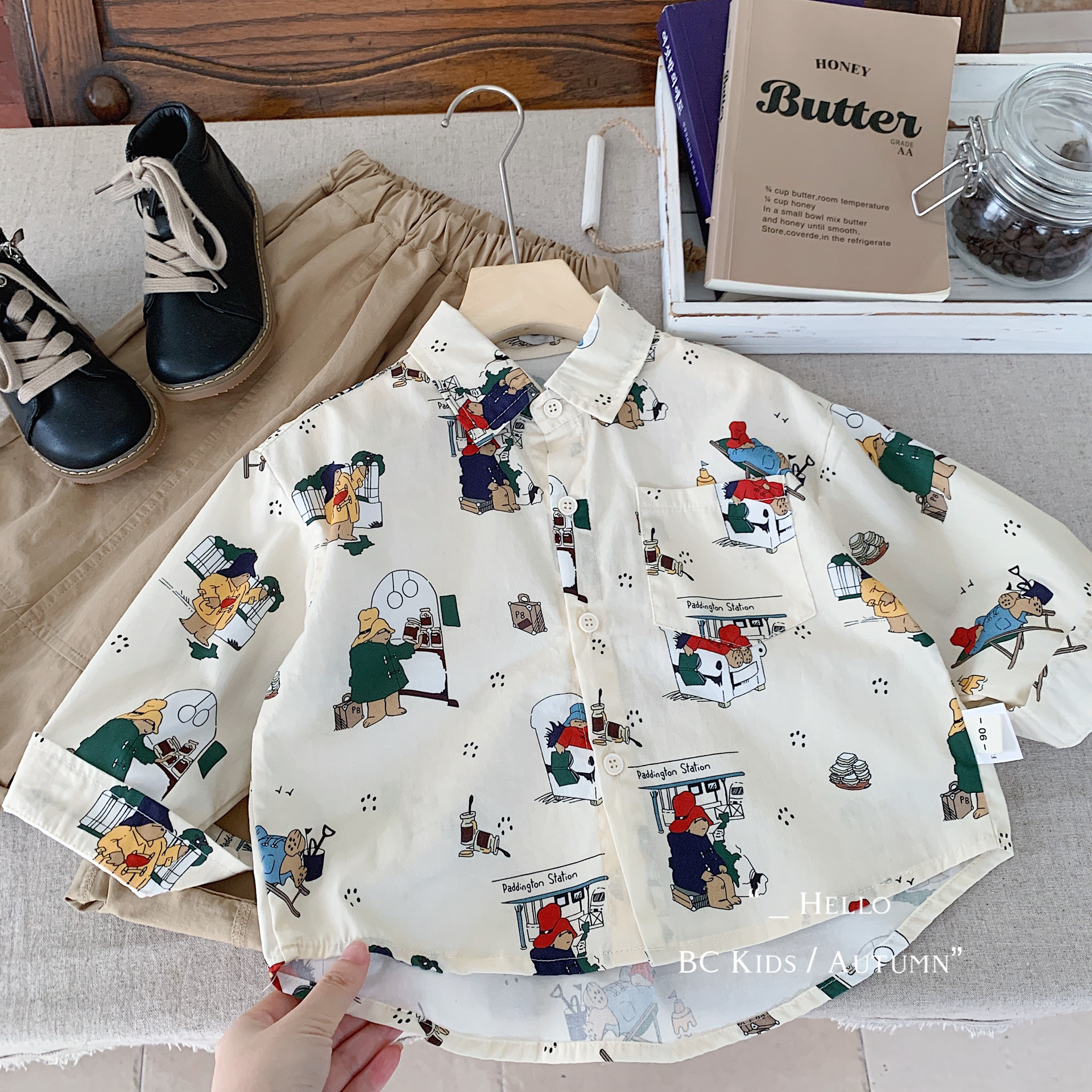 Kemeja Anak-anak Buncheng Model Musim Semi 2025 Kardigan Kartun Produk Baru Bercetakan Penuh Jaket Anak Laki-laki Kemeja Katun Murni Trendi G0329