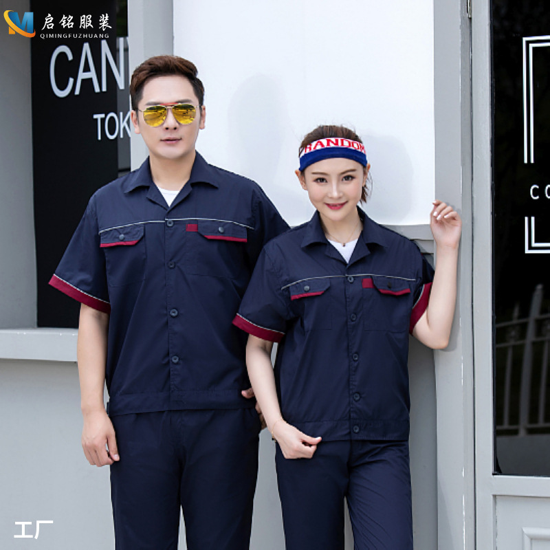 Pakaian Perlindungan Tenaga Kerja Lengan Pendek Musim Panas Kustom Setelan Pakaian Kerja Bengkel Reflektif Tipis Pakaian Perbaikan Otomatis Transportasi Pembersih dan Bordir