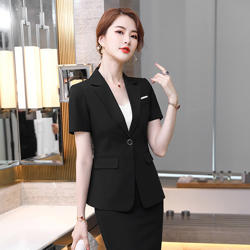 Setelan profesional lengan pendek wanita baru overall rok setelan jas formal kasir meja depan hotel salon kecantikan musim panas