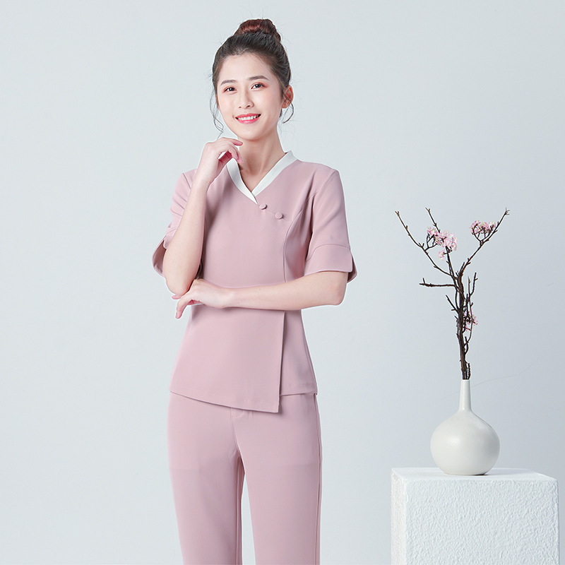 Baju salon kecantikan overall wanita Pusat Kesehatan Pijat kaki toko teknisi ahli kecantikan lengan pendek setelan temperamen pakaian SPA mandi kaki