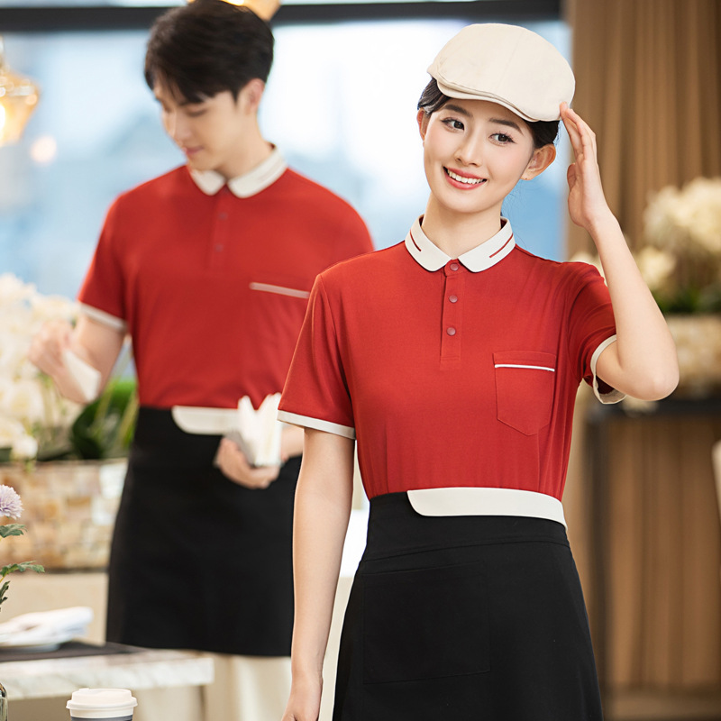 Baju koki lengan pendek pria, pakaian kerja hotel di dapur dan musim panas, baju kerja pria nyaman