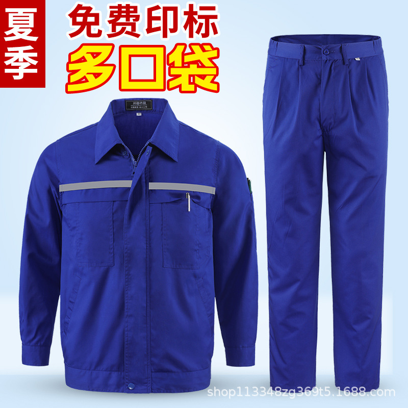 Set Pakaian Kerja Model Baru Musim Panas Lengan Panjang Banyak Saku Perbaikan Otomatis Strip Reflektif Pakaian Asuransi Tenaga Kerja Kelas Atas Tahan aus di Bengkel Pabrik