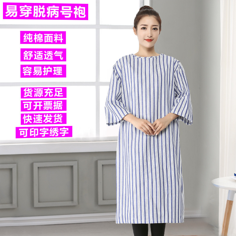 Dalam stok grosir gaun rumah sakit katun murni pakaian terbalik jubah pemeriksaan fisik pria dan wanita mudah dipakai untuk Parrot tempat tidur pakaian perawatan pasien