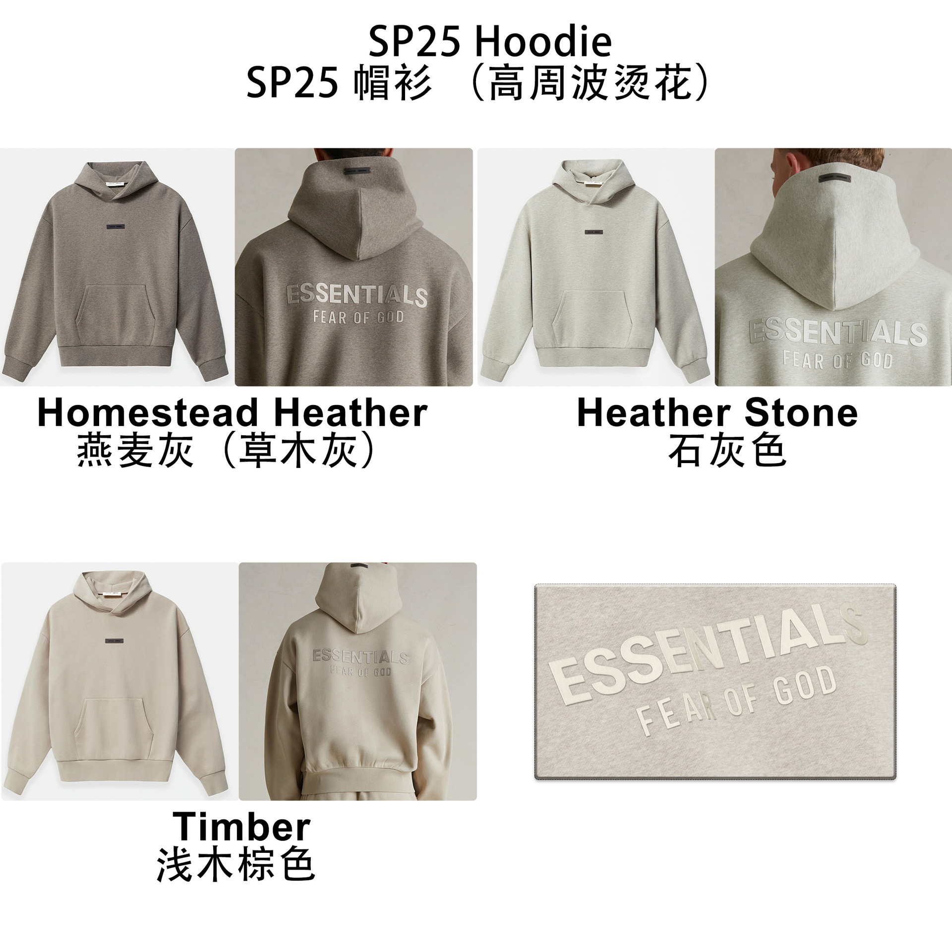 25SP 戴帽卫衣 高周波烫画 金属色ESSENTIALS潮牌帽衫Hoodie跨境