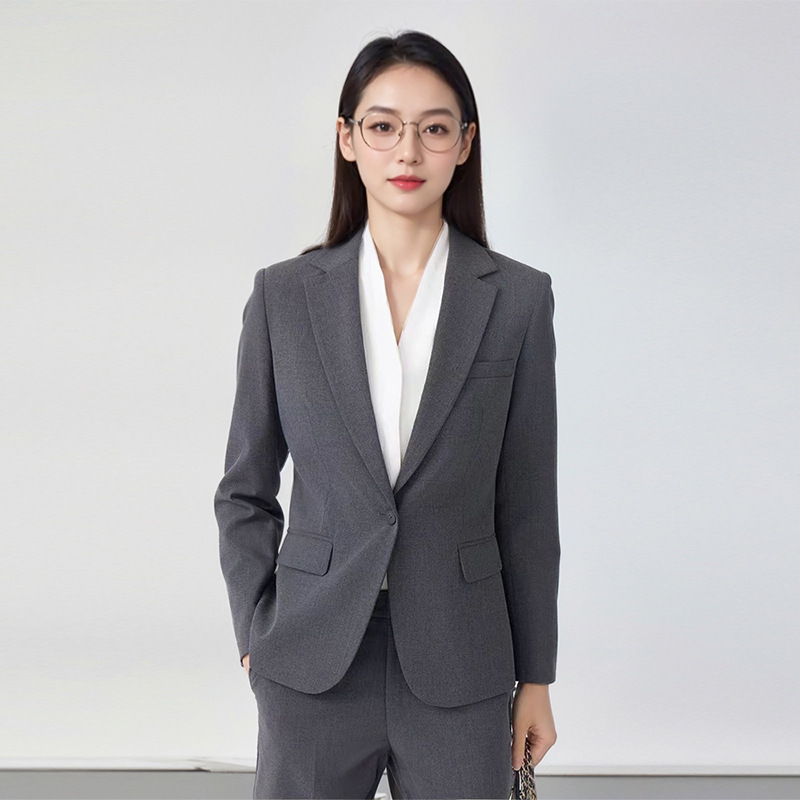 Lengan Panjang Abu-Abu Model Baru Musim Semi Musim Gugur dan Musim Dingin Pakaian Bisnis Jas Kecil Kerah Jaket Kemeja Celana Wanita Set Tiga Potong