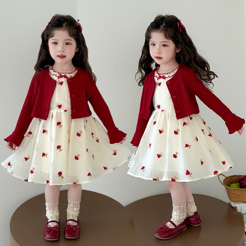 女童甜美连衣裙套装春秋装2025新款儿童小女孩洋气开衫背心裙套装