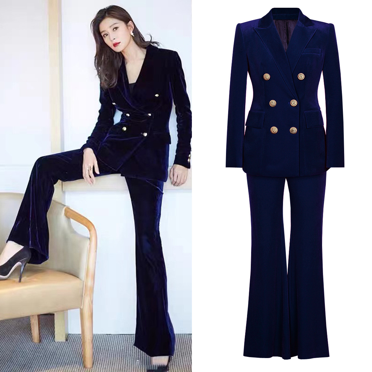 X30 setelan pakaian wanita Eropa dan Amerika wish OL modis, setelan dua potong celana panjang kasual profesional