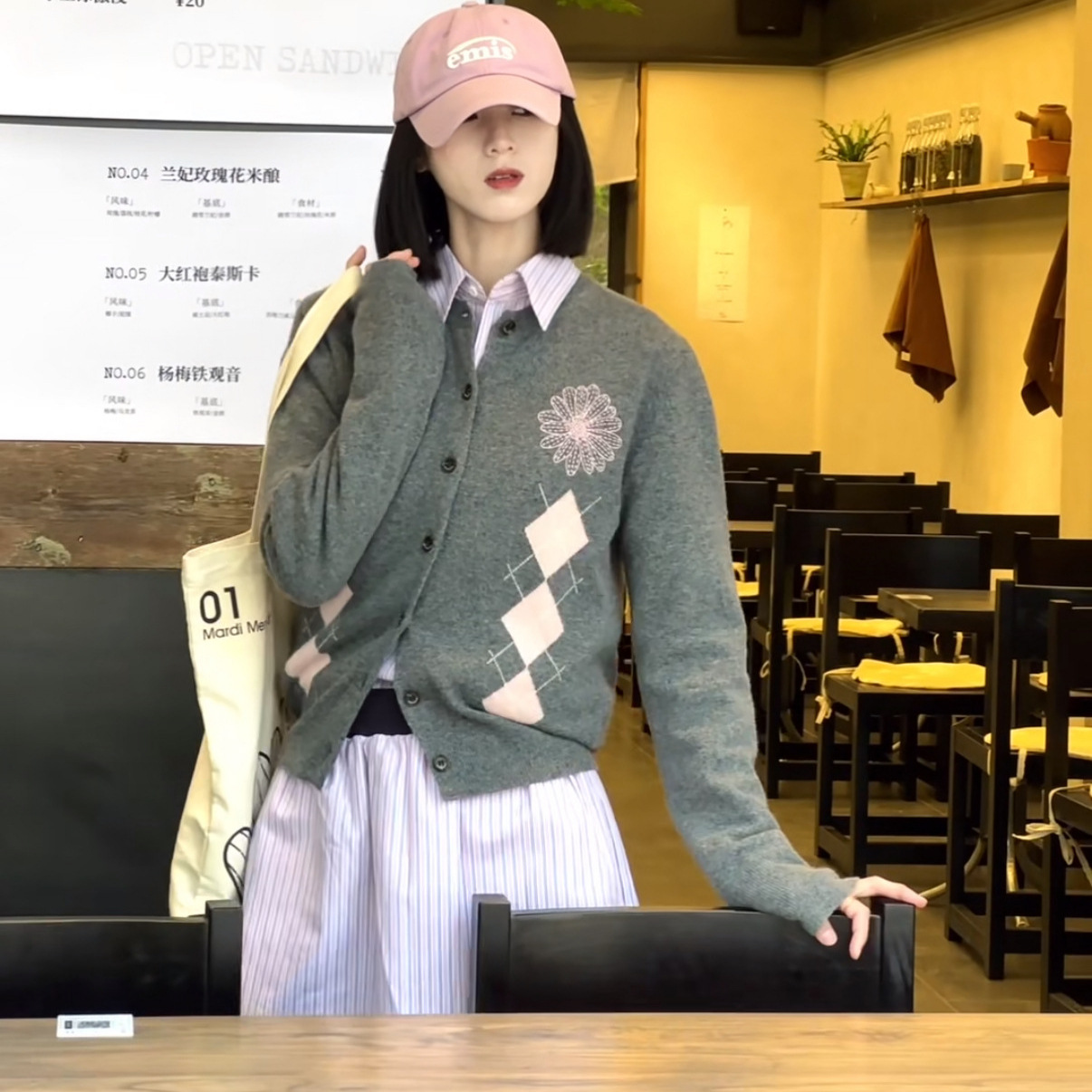 金高银同款小雏菊刺绣针织开衫外搭秋冬新款韩系气质宽松毛衣外套