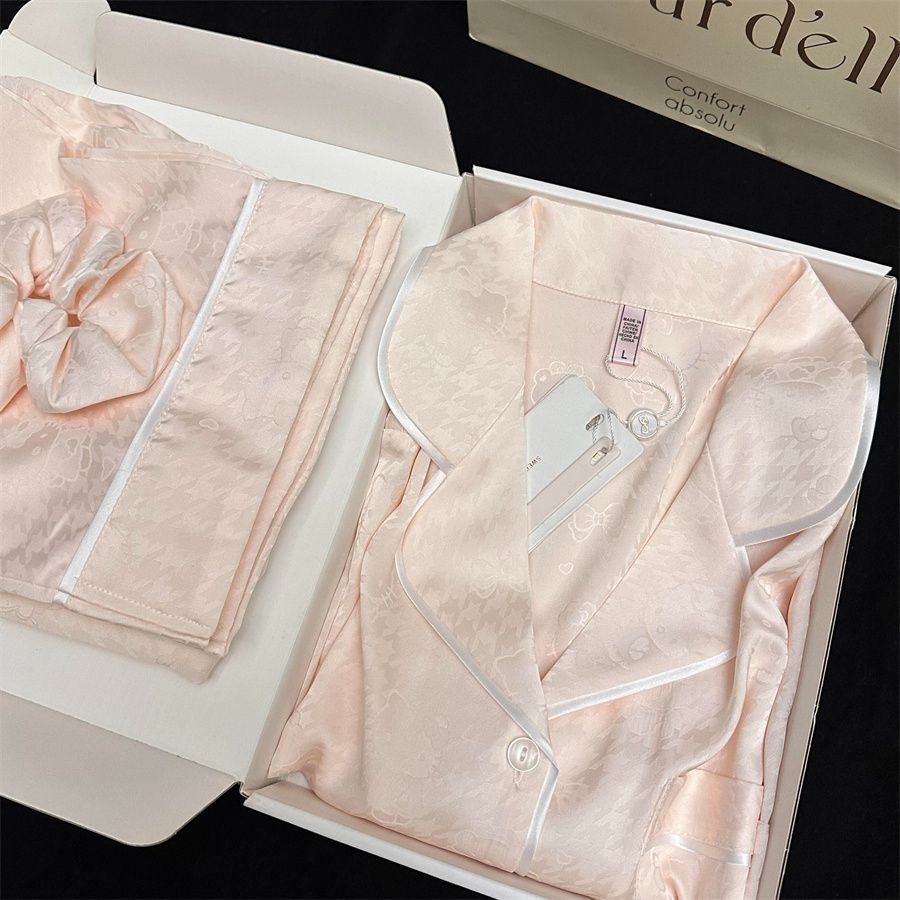 Set Pakaian Rumah Musim Panas Kardigan Lengan Panjang Sutra Es Jacquard Musim Panas Wanita Piyama Model Baru Musim Gugur