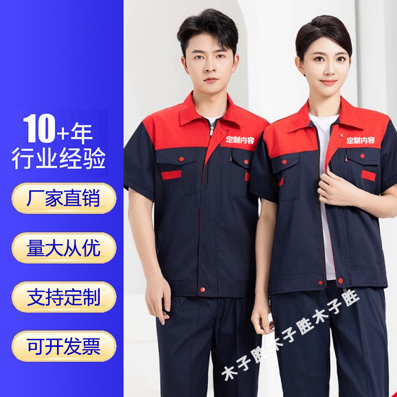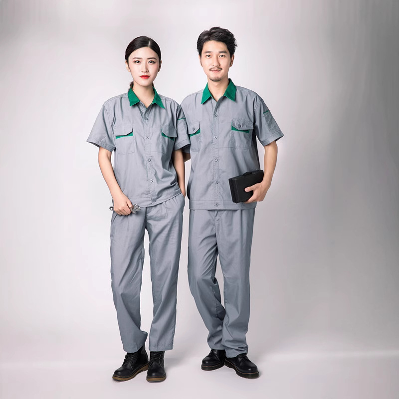 Setelan Pakaian Kerja Lengan Pendek Musim Panas Pria Wanita Atasan Pakaian Pekerja Teknik Perbaikan Otomatis Pakaian Pabrik Pembersihan Properti Model Tipis Tembus Udara