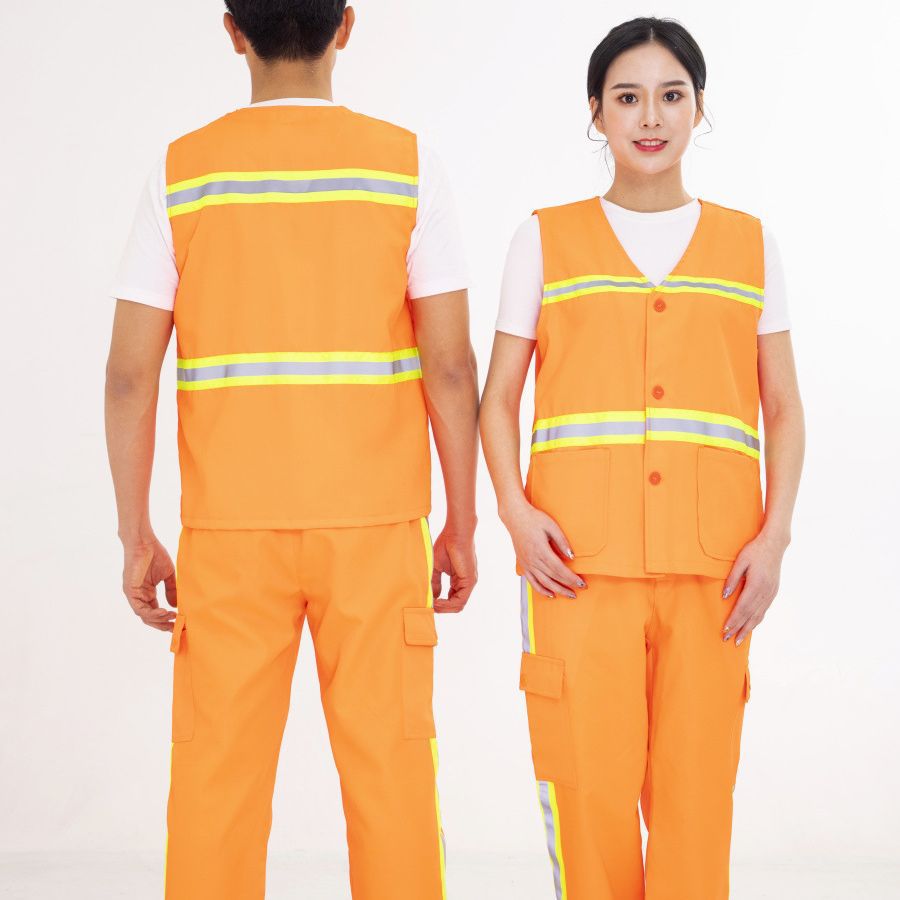 Pekerja sanitasi rompi strip reflektif oranye rompi hijau Teknik hijau pembersih rompi pakaian kerja biru rompi