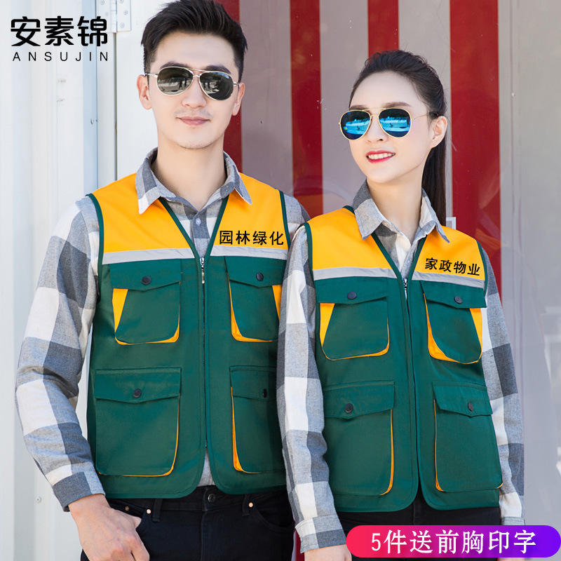 Strip reflektif agen mengemudi pembersih Properti pakaian kerja dekorasi bangunan rompi pakaian kerja banyak saku lanskap Teknik
