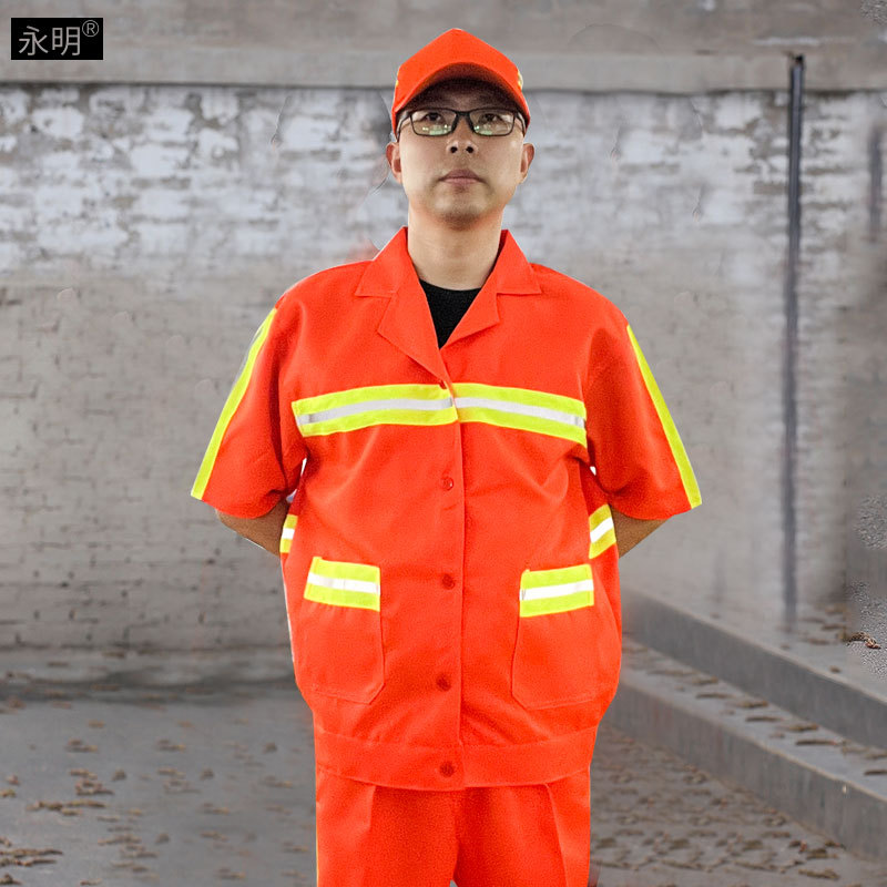 Setelan pakaian kerja musim panas, kaus reflektif pembersih Properti pembersih jalan pemeliharaan sanitasi lengan pendek