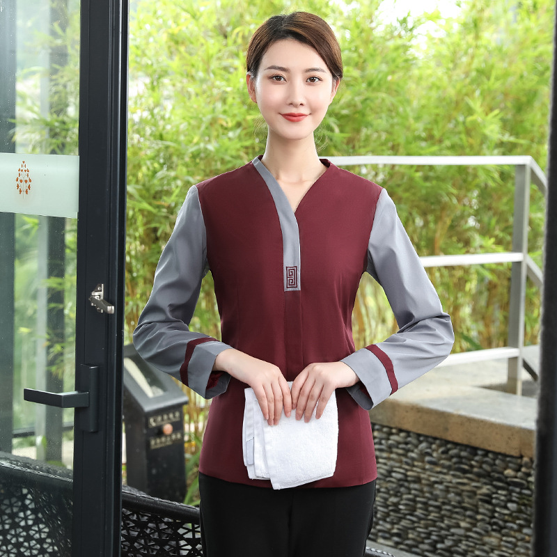 Pakaian pembersih Hotel lengan panjang, pakaian pembersih Properti lengan panjang, pakaian kerja wanita PA ruang tamu, pakaian Bibi musim gugur dan musim dingin ukuran plus