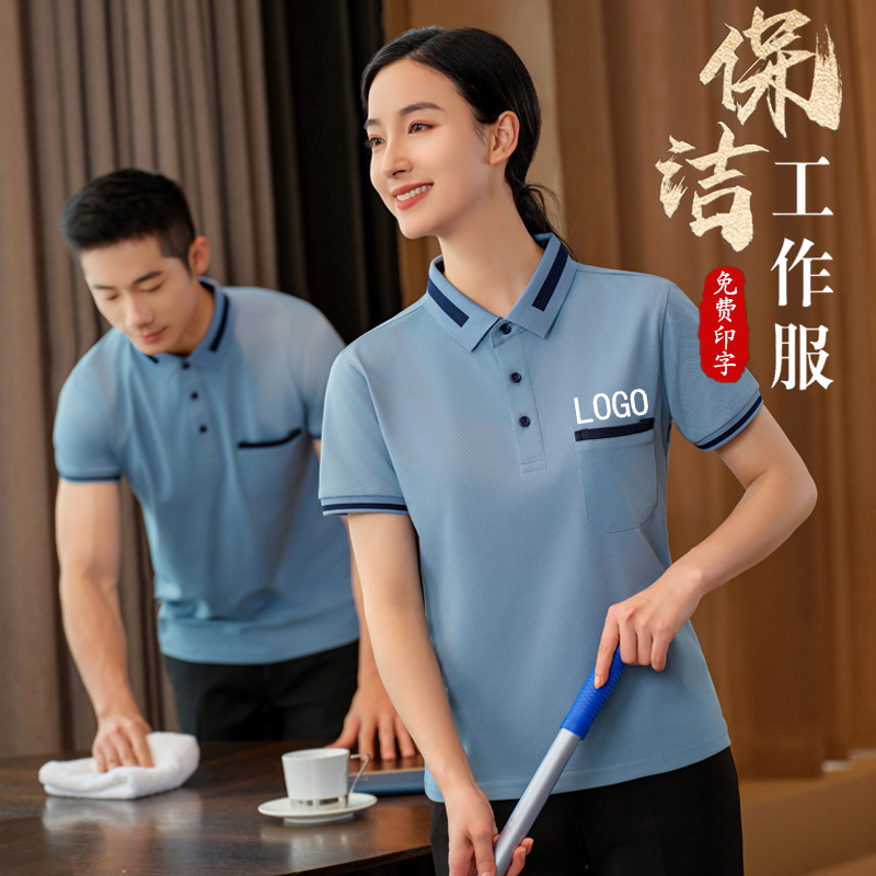 T-shirt pakaian kerja membersihkan pakaian kerja lengan pendek musim panas pakaian hotel komunitas properti mall pembersih bibi membersihkan pakaian kerja cetak