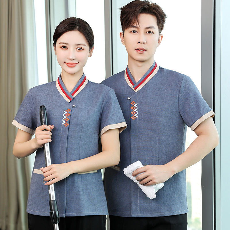 Pakaian pembersih Properti pakaian kerja hotel ruang tamu pakaian kerja pembersih lantai musim panas pakaian pembersih pria dan wanita lengan pendek