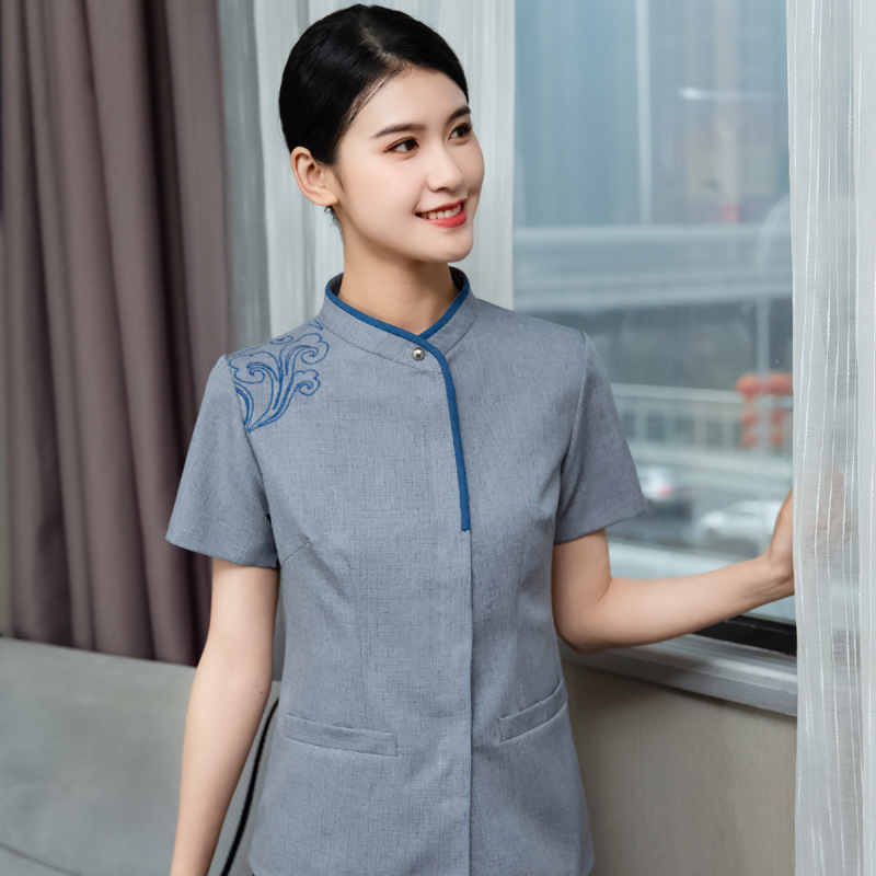Pakaian kerja membersihkan pakaian wanita lengan pendek musim panas properti hotel wanita ruang pelayan bibi PA pakaian pembersih
