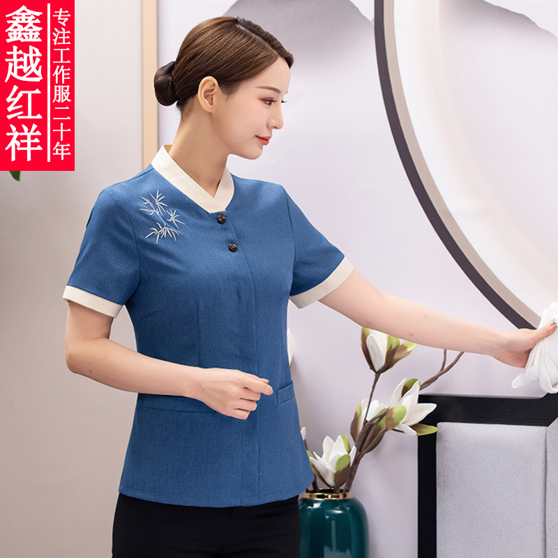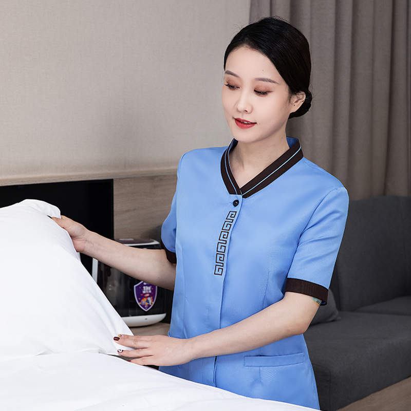 Pakaian kerja pembersih lengan pendek untuk wanita kamar hotel rumah tangga bibi pembersih pakaian penjualan mal belanja properti pakaian musim panas