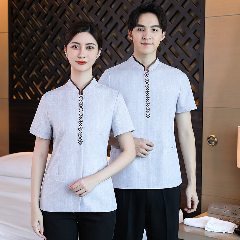 Hotel linen pakaian pembersih lengan pendek pakaian musim panas hotel tamu Kamar pembersih bibi pembersih pakaian kerja wanita bernapas