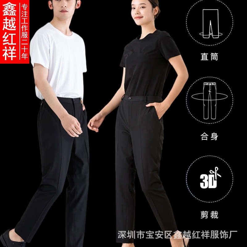 Celana panjang pembersih elastis pria dan wanita, celana kerja pelayan pinggang, celana pembersih properti restoran hotel, celana panjang hitam musim panas untuk pria dan wanita