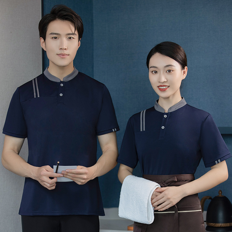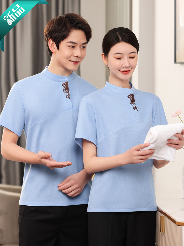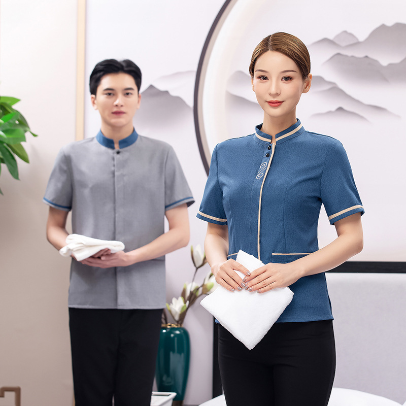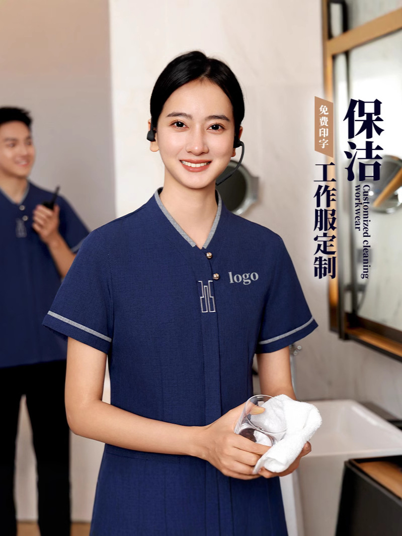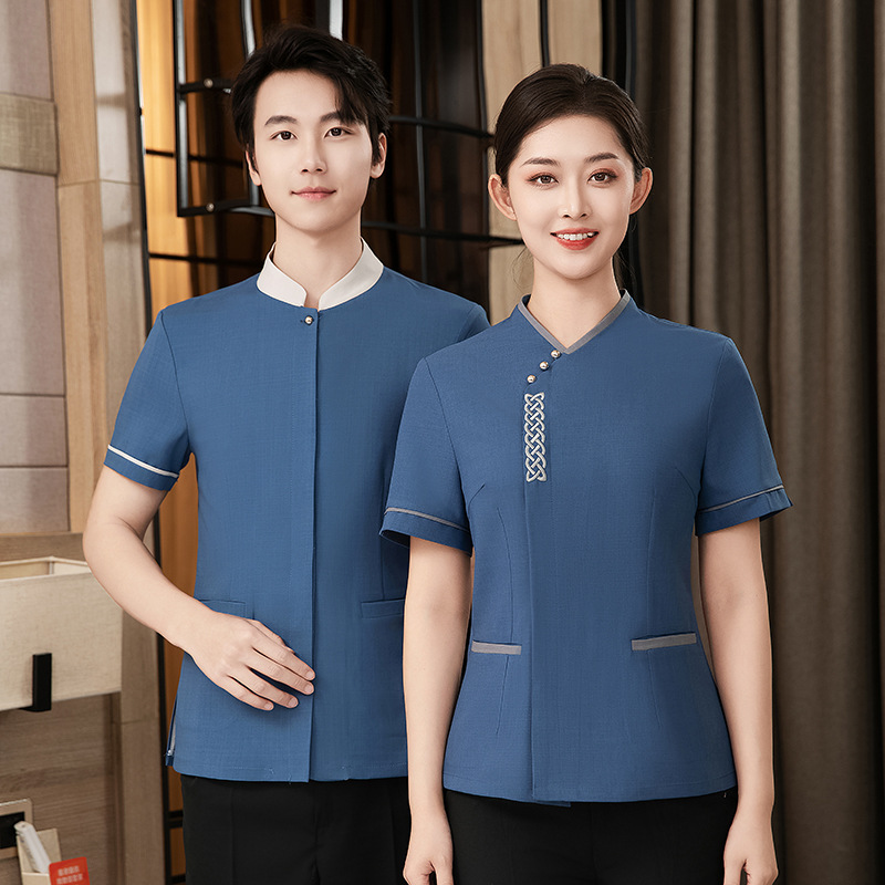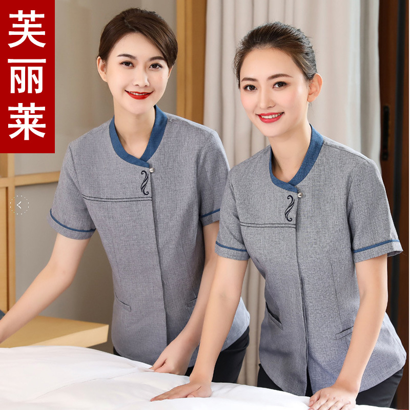 Pakaian kerja membersihkan hotel lengan pendek, pakaian pembersih properti komunitas hotel restoran, rumah sakit, lengan pendek musim panas