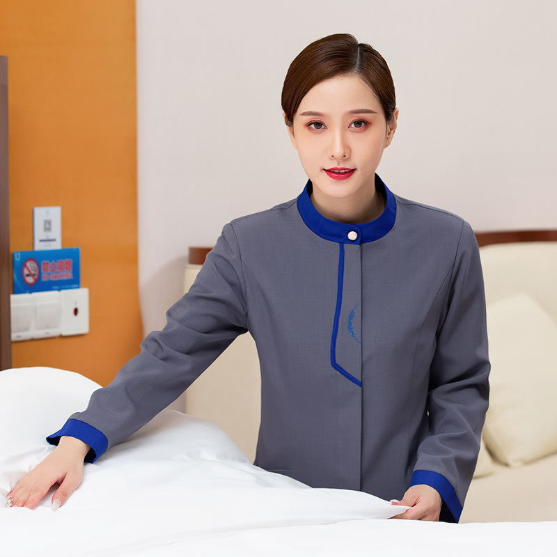 Pakaian pembersih lengan panjang musim gugur dan musim dingin, pakaian hotel ruang tamu, pembersihan properti, pakaian kerja Hotel PA, seragam pembersih