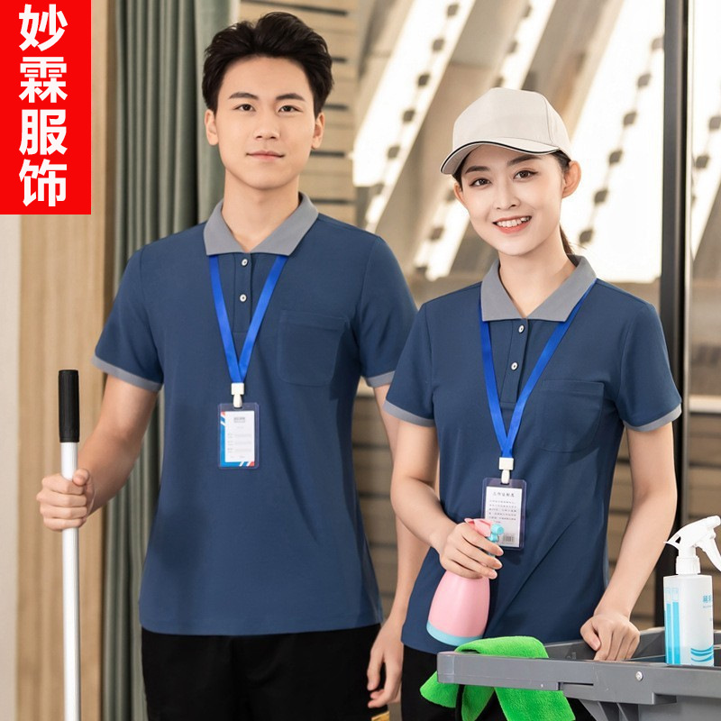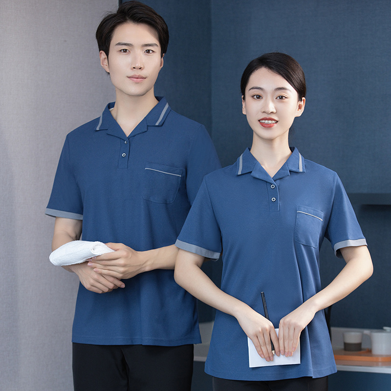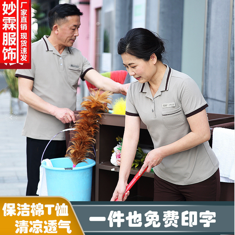 T-shirt lengan pendek bersirkulasi untuk pakaian kerja membersihkan T-shirt musim panas Hotel ruang tamu komunitas properti seragam bibi PA
