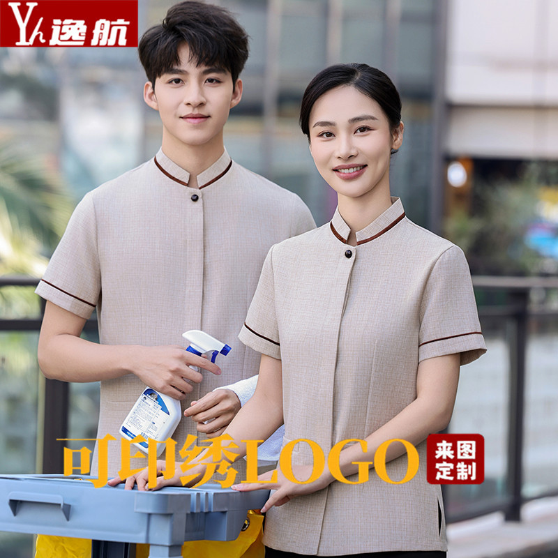 Pakaian Kerja Staf Pembersih Musim Panas Pakaian Pelayan Hotel Hotel Kelas Atas Wanita Lengan Pendek Seragam Bibi Pembersih Properti
